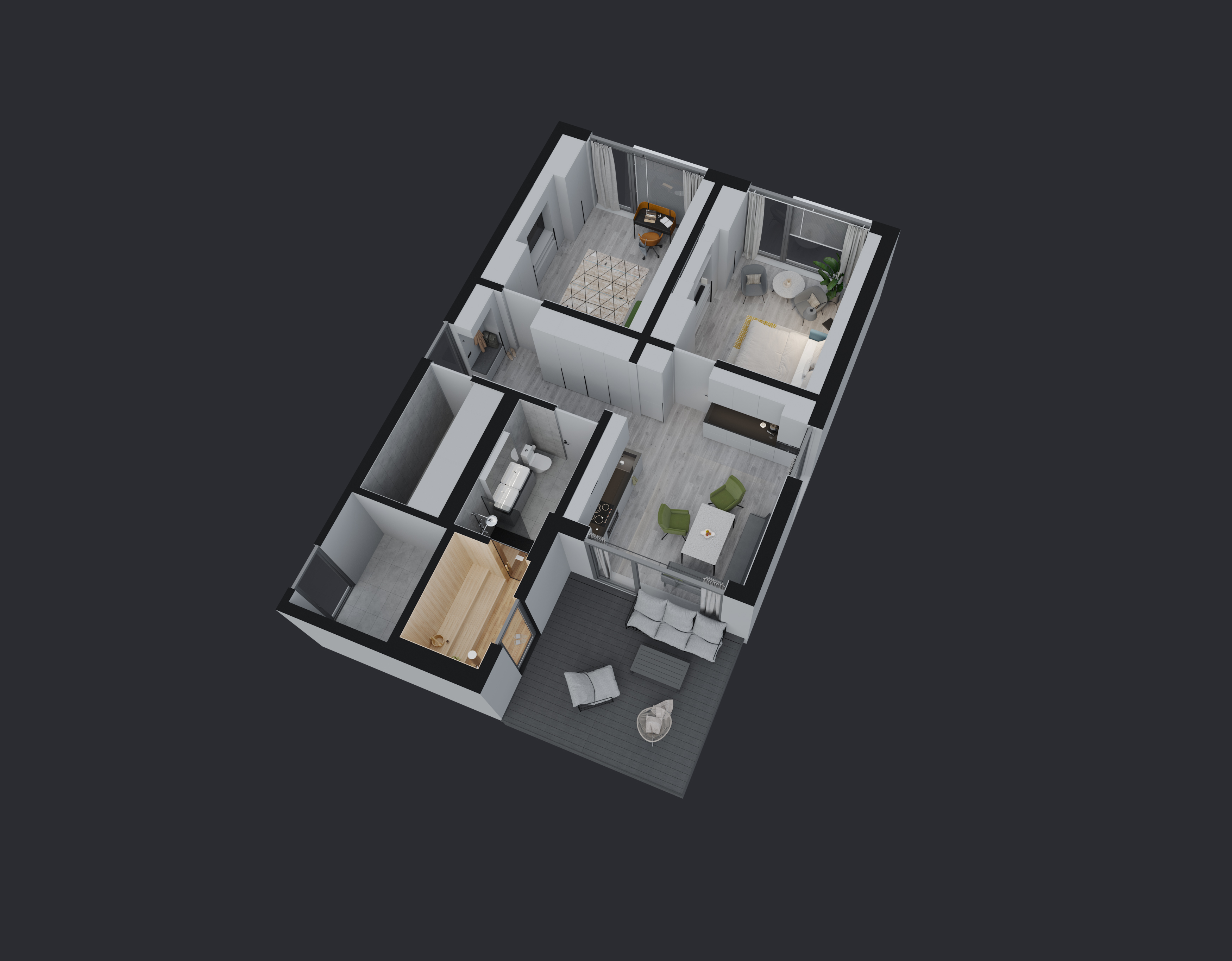 • Building in a sauna (with entrance from the bathroom and exit to the terrace)