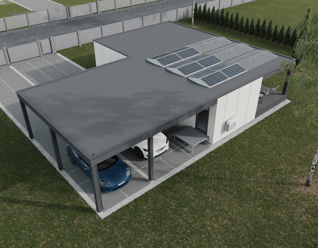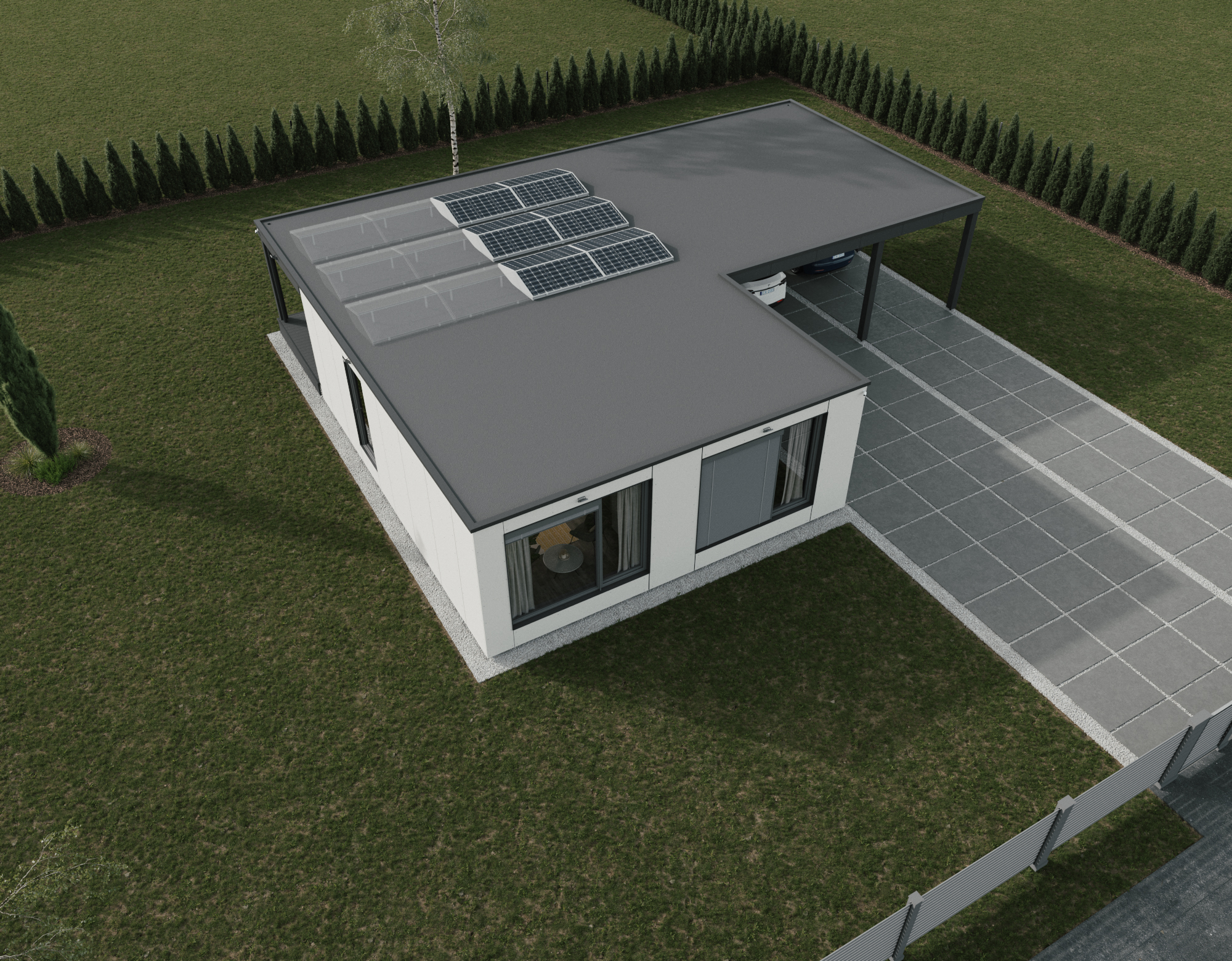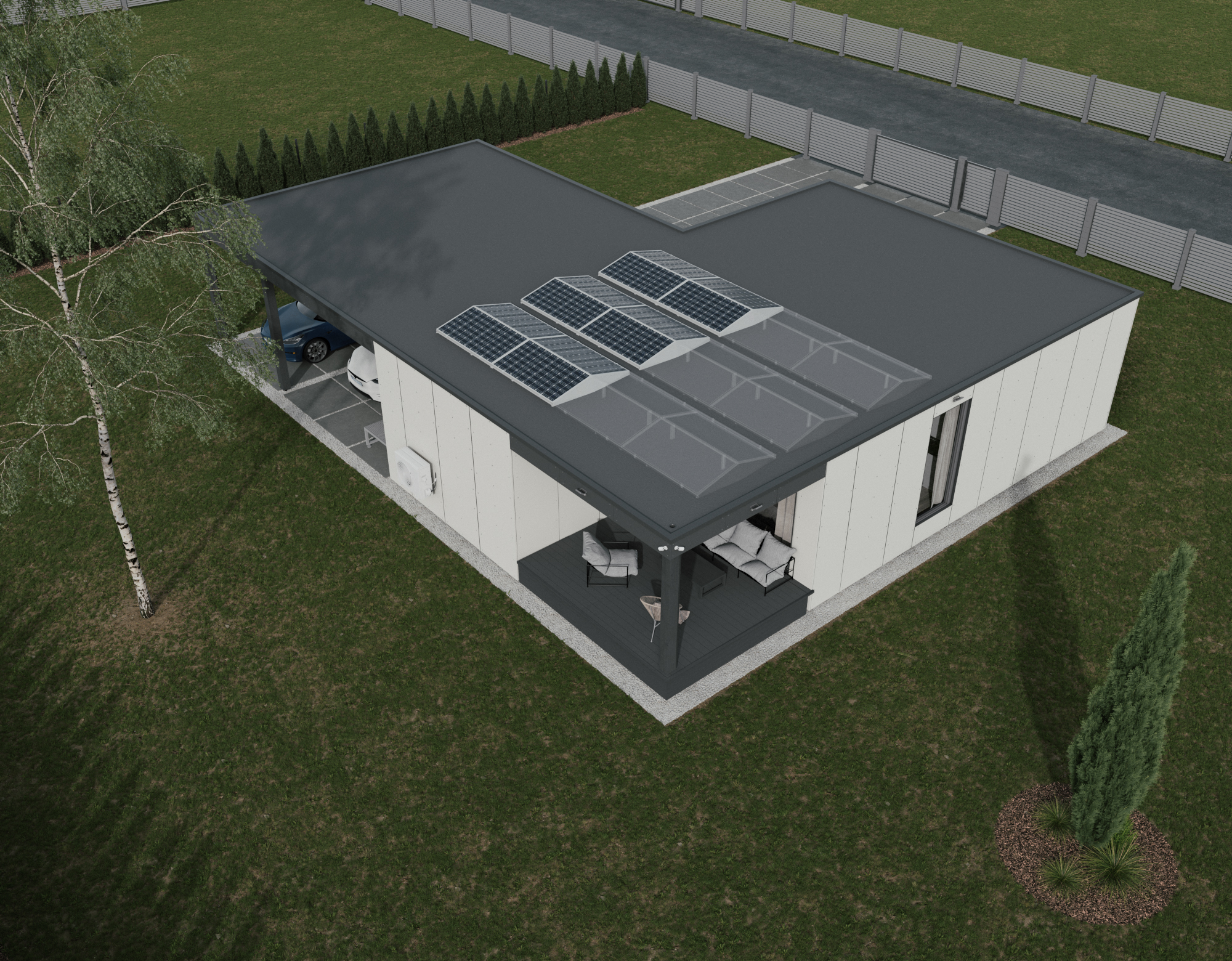 with covered terrace, canopy for 2 cars and option to build in a sauna (4 m2)