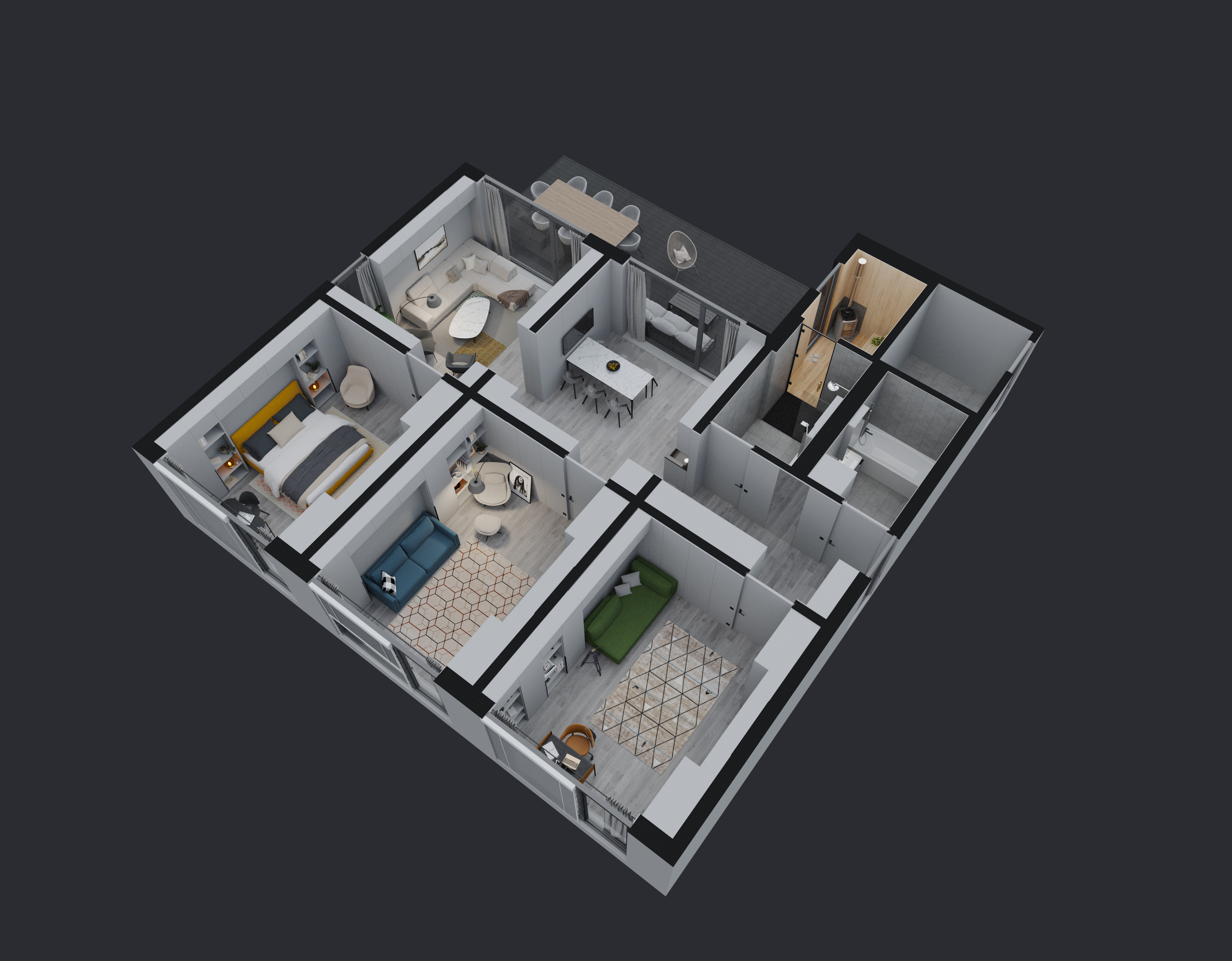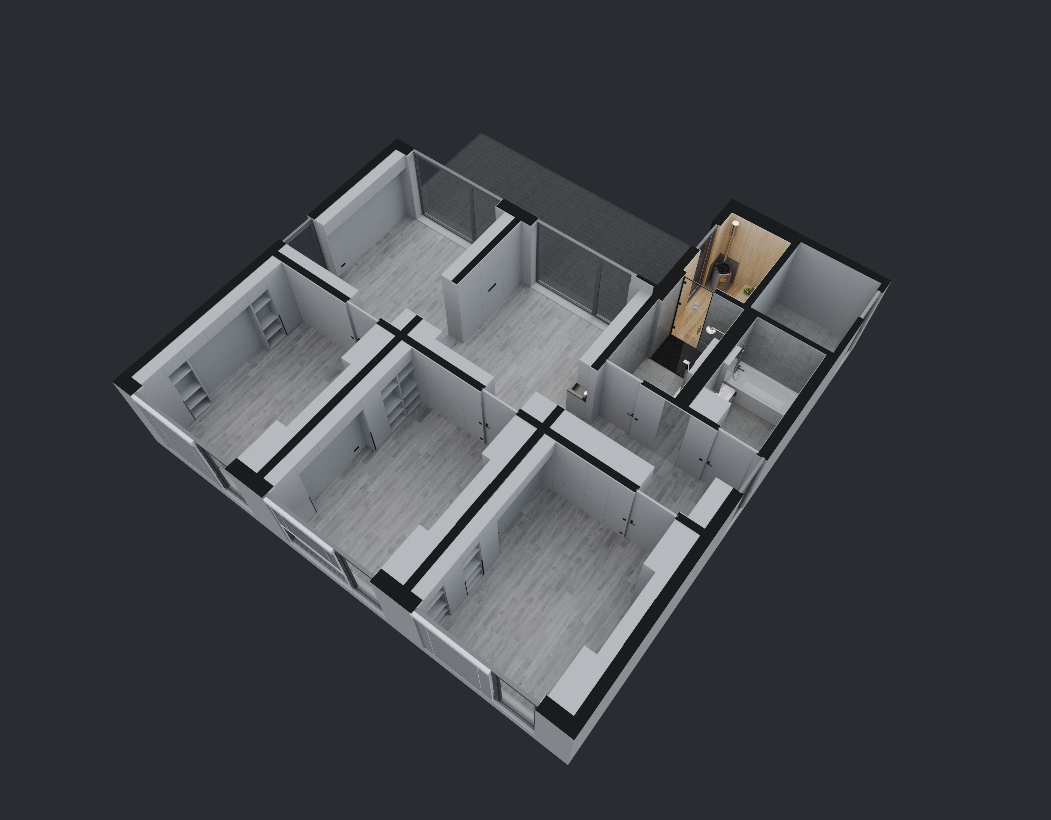 • Building in a sauna (with entrance from the bathroom and exit to the terrace)